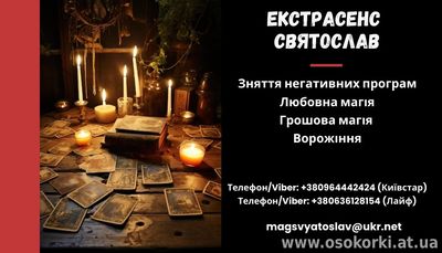 Якщо вам потрібне рішення для складної ситуації, не чекайте - зверніться до екстрасенса Святослава! Святослав - маг, який за допомогою своїх знань і практик уже допоміг багатьом людям подолати труд
