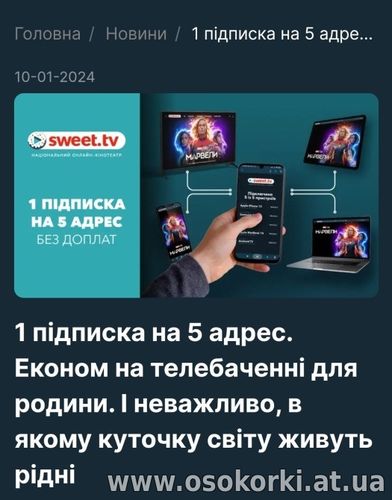 Sweet_TV дає круту можливість родинам економити на телебаченні .Адже 1 підписку можна підключити одразу на 5 різних адресів .