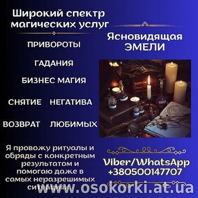 Я потомственная ясновидящая Эмели, окажу профессиональную помощь в решении непростых жизненных ситуаций. Обряды и ритуалы, которые провожу, прове